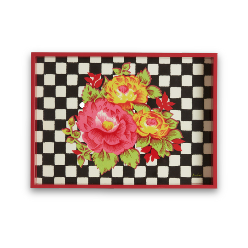This lacquered wooden tray features Lisa Corti’s signature floral prints in bold contrasts and vibrant hues. A striking monochromatic checkered backdrop creates a unique, almost three-dimensional effect, elevating the signature Lisa Corti floral motif. Perfect for brightening your coffee table, elevating aperitivo hour, or adding a cheerful touch to any space, this versatile tray radiates the joyful spirit of summer. Perfect for brightening your coffee table, enhancing aperitivo hour, or adding a cheerful touch to any room, this versatile tray brings the joyful spirit of summer to your home..See our entire Lisa Corti collection here.