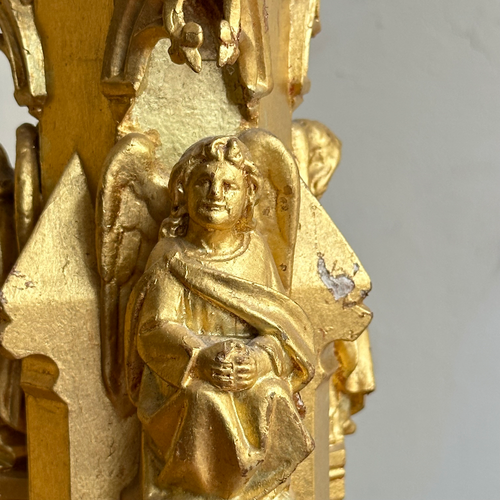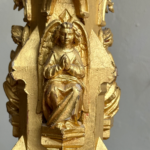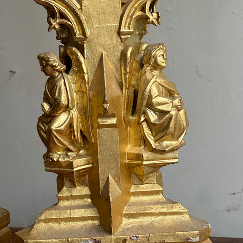 This pair of early 20th-century Italian gilded wood candlesticks are among John Derian's trove of handpicked vintage & antique goods. With intricate gilding and classically ornate details, the candlestick holders feature carved angels and period architectural motifs.