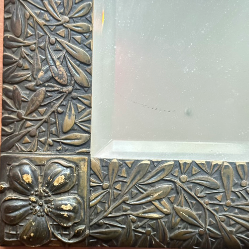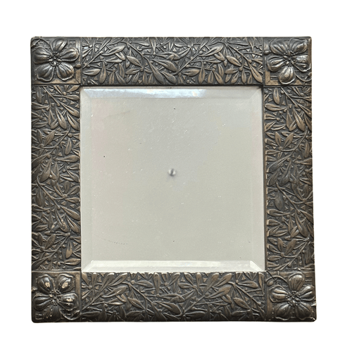 This 13.5" W x 13.5" H square early 20th century Arts & Crafts mirror hails from John Derian's thoughtfully curated collection of vintage art & mirrors. The brass embossing adds a touch of elegance and detail to the mirror's frame, enhancing its aesthetic appeal while staying true to the movement's emphasis on handcrafted elements. This combination of artisanal skill and decorative refinement captures the essence of the Arts and Crafts style, making the mirror a timeless piece of functional art.
