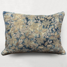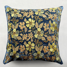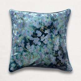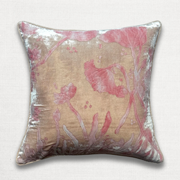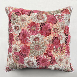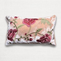 New Flower Embroidered Silk Velvet Cushion in Ivory