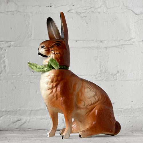 Added to cart Papier-Mâché Sitting Rabbit with Green Neck Tie