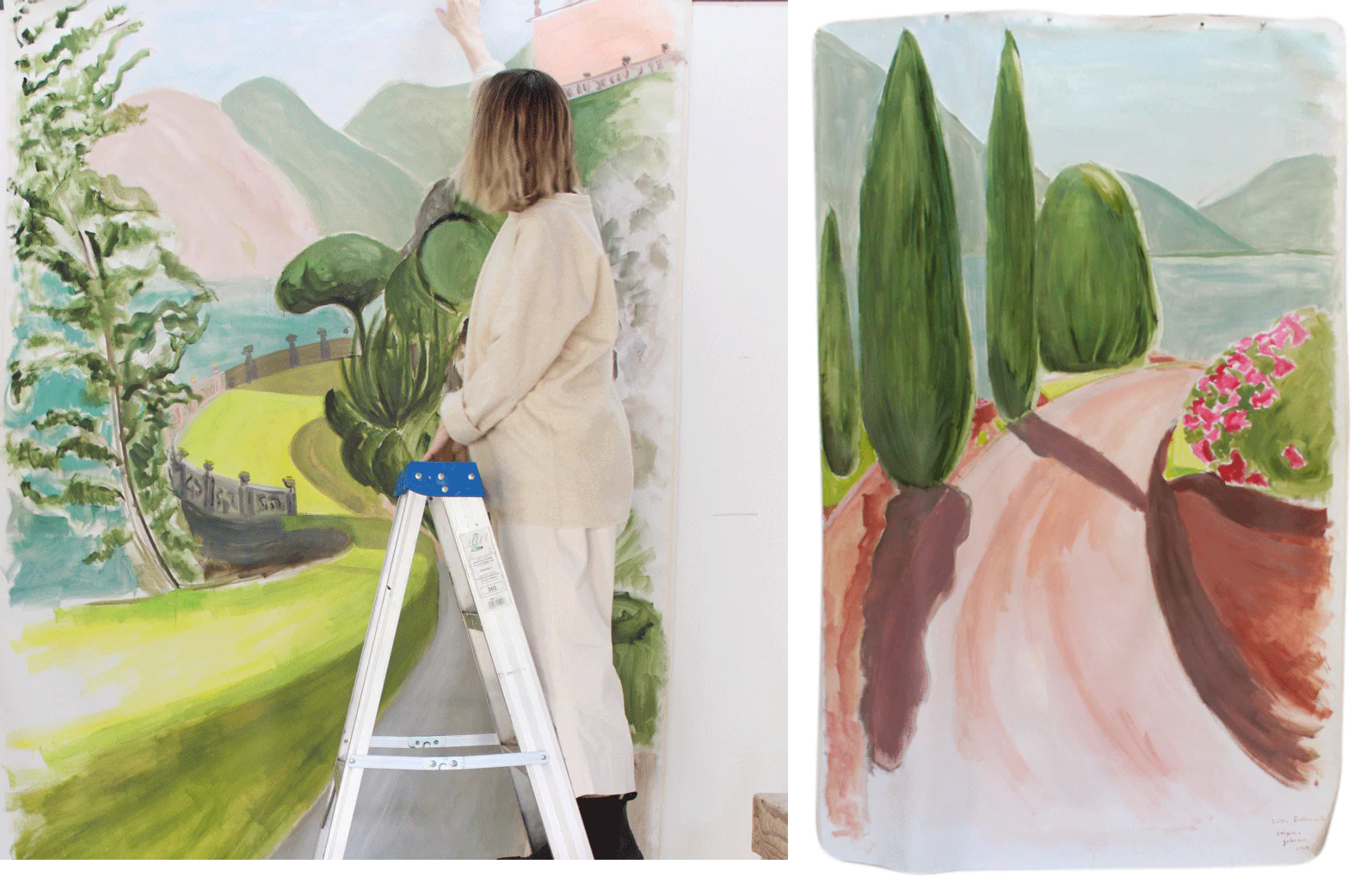 Virginia Johnson’s large-scale painted backdrops capture Mediterranean vistas in vibrant colors. Virginia Johnson designs wallpaper, scarves, dresses and tunics that have been sold at stores around the world such as Barneys, Liberty's, Holt Renfrew, J.Crew and Anthropologie. Virginia's illustration clients include Vogue, New York Magazine, and John Derian, as well as the Madame Chic series and Deborah Needleman’s The Perfectly Imperfect Home.