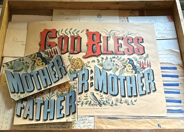 John is often asked where he finds the imagery for his decoupage and many collaborations. This month, take a peek “in the drawer” and discover the source of our Mother and Father trays and postcards, as well as the design for our Astier de Villatte mugs. The artwork comes from a print by Currier & Ives.