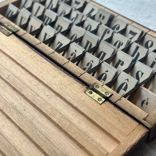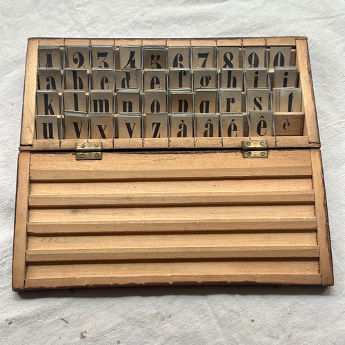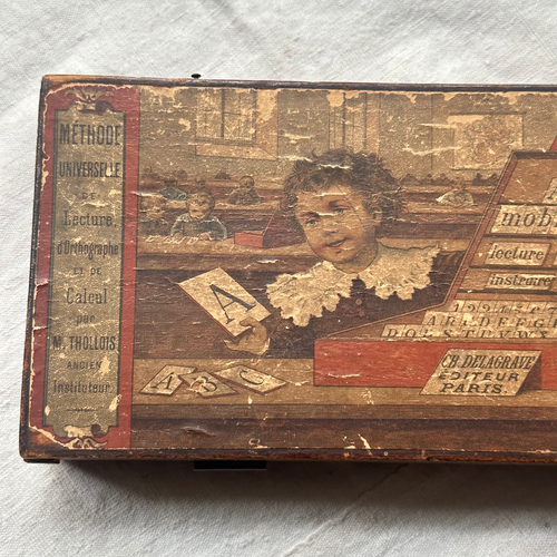 Among John Derian's trove of handpicked vintage & antique goods, is this a French educational tool. Designed as a part of Thollois' Méthode Universelle de Lecture et d'Orthographe (Universal Reading and Spelling Method), this set of tin movable letter tiles was used to teach children spelling and reading.