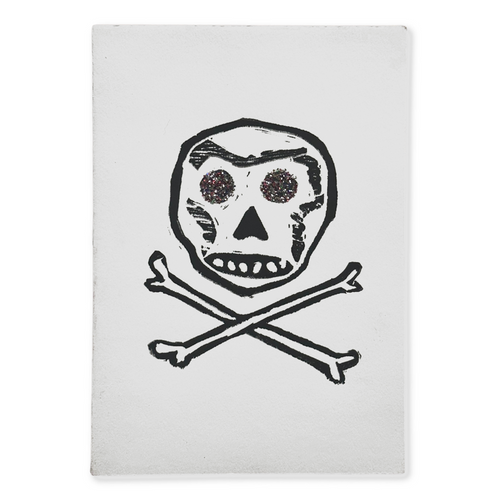 This hand block printed skull folded card, made on premium, thick paper, serves as the perfect canvas for a personal, handwritten note for any occasion or framed as a unique piece of artwork.