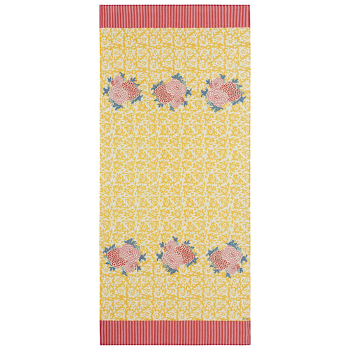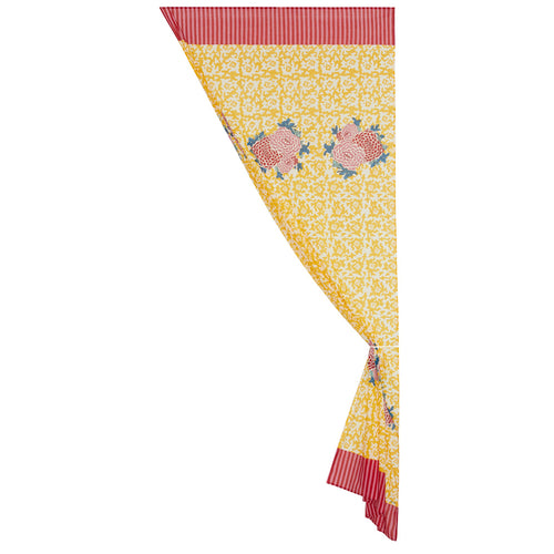 Hung at a window or door, the airy cotton muslin mezzero, handcrafted in India through blockprinting, adds a colorful and unique touch to any space. For a decadent take on sumptuous flowers, the Small Corolla design, block printed by hand, intricately details the expressive flowering buds, becoming an iconic design for Lisa Corti.