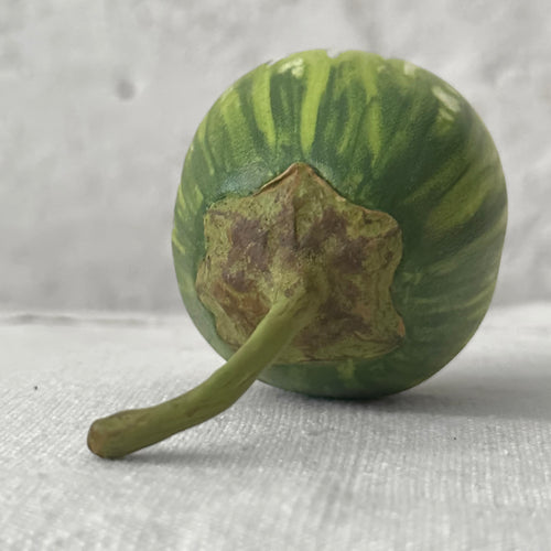 Artfully crafted in their Walsall studio, the Porcelain Small Thai Eggplant from Penkridge Ceramics embodies a strikingly authentic charm. Inspired by trompe l'oeil and the grace of historical still life art, Penkridge Ceramics skillfully captures the organic beauty of fruits and vegetables with meticulous precision.