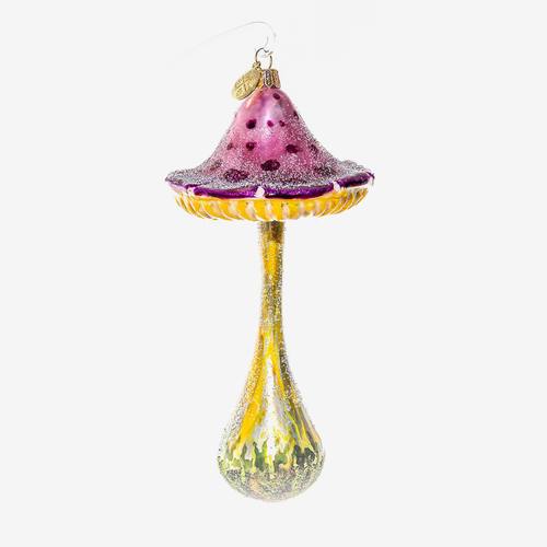 Purple Dotted Mushroom Ornament is a whimsical and captivating addition to your holiday decor. Meticulously crafted, this ornament features a charming toadstool design, adding a touch of woodland enchantment to your tree.